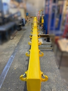 Wir bieten mit der Balkentraverse "Tausendfüßler" eine praktische Lösung für den Transport von Rohrmaterial und Langgütern unterschiedlicher Länge und Durchmesser. Die Traverse zeichnet sich durch ihre robuste Konstruktion, hohe Traglast und vielfältige Einsatzmöglichkeiten aus.