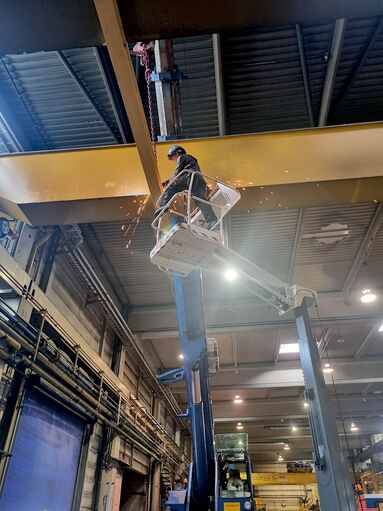 Erleben Sie die herausragende Expertise der Firma Nehles im Bereich der Kranwartung und -sanierung! Kürzlich führten wir erfolgreich die Sanierung und den Austausch des Kopfträgers an einem 25-Tonnen-Kran durch, wo im Zuge einer routinemäßigen Inspektion durch unsere hochqualifizierten Techniker an einem Kopfträger des Krans altersbedingte Ermüdungserscheinungen in Form von Rissen festgestellt wurden. Als sofortige Maßnahme wurden diese Risse notdürftig geschweißt, allerdings unter der klaren Bedingung, dass der Kopfträger umgehend ausgetauscht werden muss.