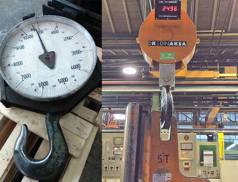 TR-DIN Unterflaschen mit integrierter Waage sind eine extrem stabile und hochgenaue Alternative zum Einsatz einfacher Kranwaagen. Durch die in die Kranflasche integrierte Messzelle verliert die Krananlage nicht an Hakenhöhe. In der Regel sind TR-DIN Waagen sehr einfach zu installieren. Die auch bei schlechten Lichtverhältnissen gut lesbare, rote Digitalanzeige informiert den Kranbediener ständig und präzise über die aktuelle Last. Für eine kontinuierliche Einsatzbereitschaft wird die TR-DIN mit 2 Akkus und externem Ladegerät geliefert. So kann der erschöpfte Akku in kürzester Zeit gegen den in der Ladeschale befindlichen ausgetauscht werden. Die Lieferung erfolgt mit IR-Fernbedienung für die Befehle „TARA" und „OFF".